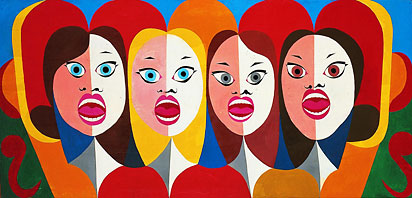 554 Das gemeinsame Lied, um 1973 Acryl und Kohle auf Papier auf PavatexBildträger 102,0 cm x 202,0 cmsigniert K. Fahrner, auf der RückseiteEntwurf für ein Wandbild des Schulhauses Kleinhüningen. Staatlicher Kunstkredit 1972/73 Basel